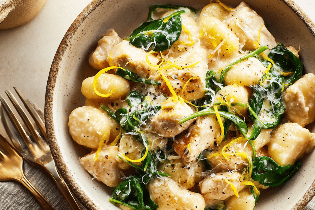 Lemon Chicken Gnocchi is a bright, creamy, and comforting one-pot meal perfect for weeknight dinners or cozy nights in. Tender gnocchi and juicy chicken are bathed in a luscious lemon …