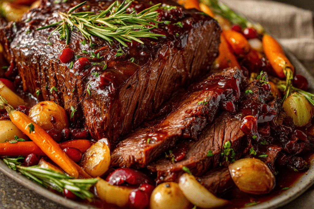 Slow-Braised Beef Roast with Cranberry Balsamic Glaze is an elegant, hearty dish that combines melt-in-your-mouth beef with a sweet-tart, rich glaze. Slow cooking ensures the beef is tender and juicy, …