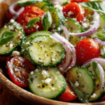 Refreshing Italian Cucumber Salad is a simple, vibrant side dish perfect for summer meals, picnics, or weeknight dinners. Crisp cucumbers are tossed with tangy vinegar, olive oil, fresh herbs, and …