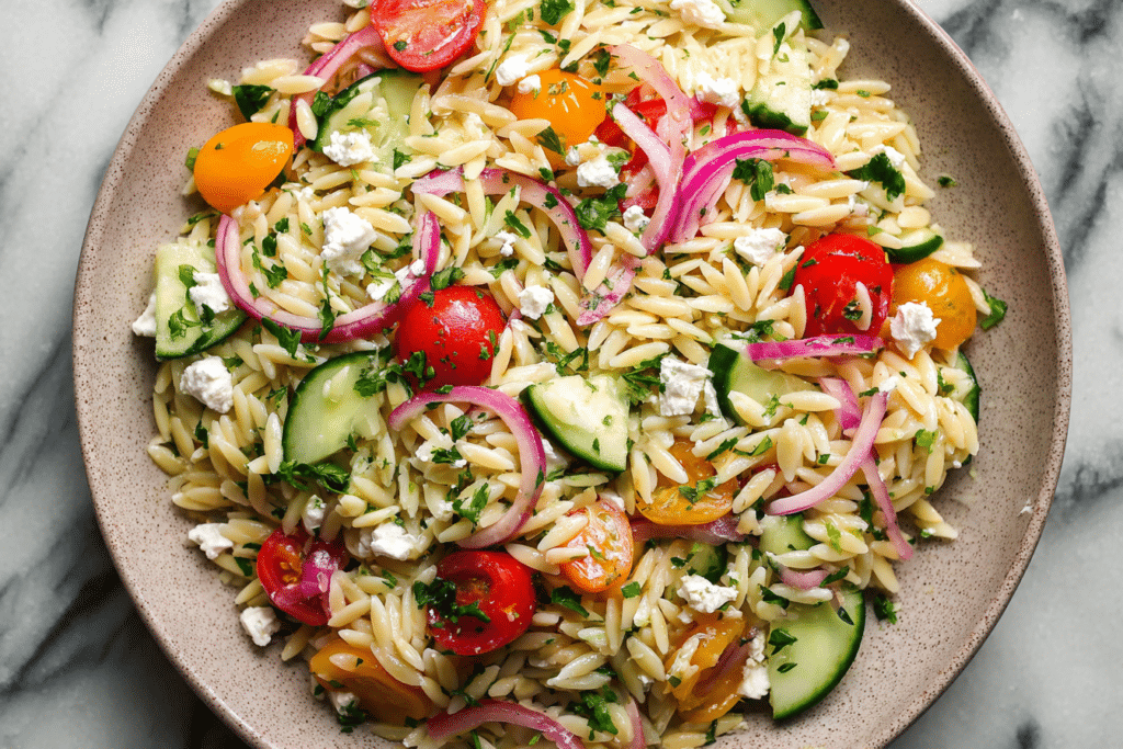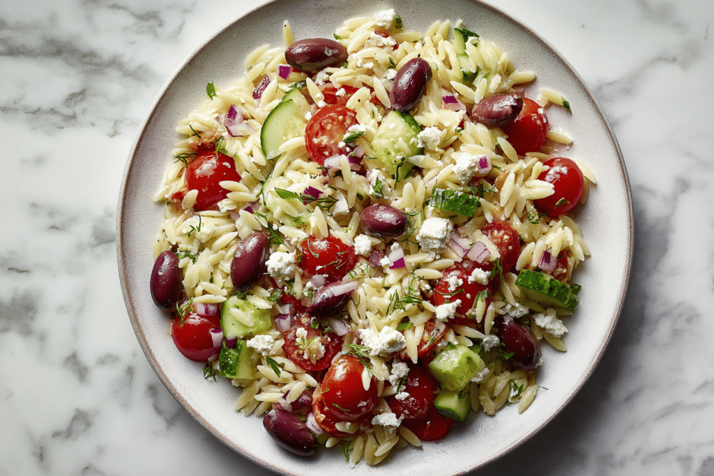 This Greek Orzo Pasta Salad is a vibrant, refreshing dish packed with tender orzo, crisp vegetables, briny olives, and creamy feta, all tossed in a bright lemony dressing. It’s perfect …