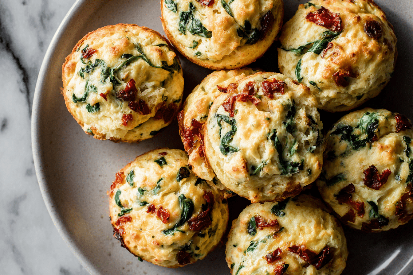 These Sun-Dried Tomato & Spinach Egg Biscuits are savory, fluffy, and packed with nutritious flavor — a keto and gluten-free breakfast delight. 🥬🍅✨