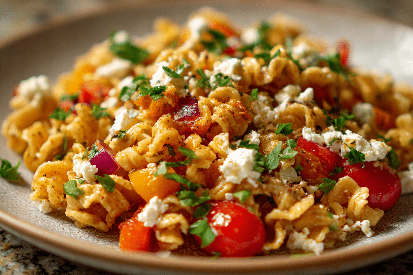 Dieser Crispy Pasta Salad mit Feta & Gemüse ist knusprig, frisch und voller Geschmack – ein echter Hingucker und garantiert ein Lieblingsrezept 🥗✨