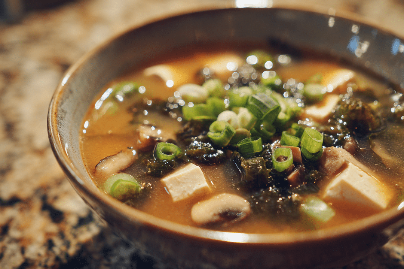 Miso soup is naturally light and low in calories while still providing essential nutrients. Miso paste contains probiotics from fermentation, which can support digestion.