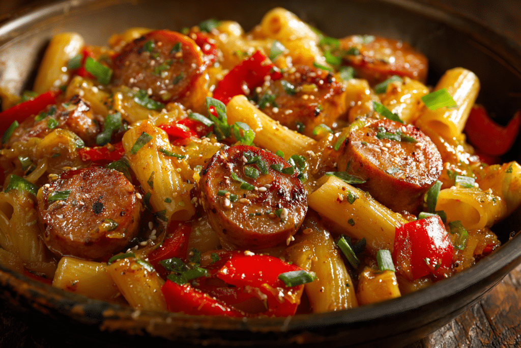 Sticky Honey Garlic Sausage Pasta Skillet – Sweet & Savory Perfection