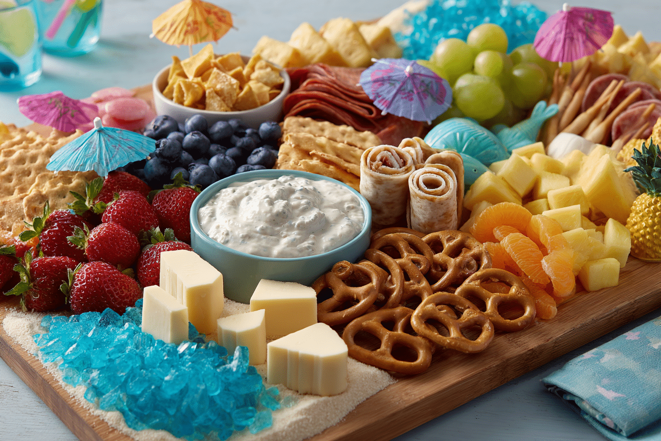 A Beach Themed Snack Board is a fun and creative way to bring summer vibes to your table. Packed with colorful fruits, crunchy snacks, sweet treats, and ocean-inspired decorations, this snack board looks like a tiny edible beach scene.