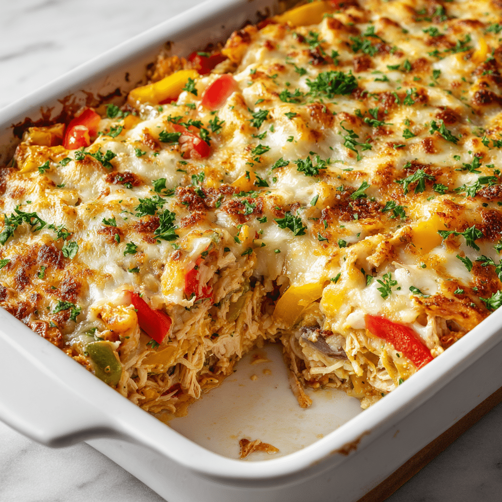 This Chicken Fajita Casserole is a cheesy, oven-baked Tex-Mex favorite with seasoned chicken, bell peppers, onions, and melty cheese. Easy, customizable, and ready in under 40 minutes.