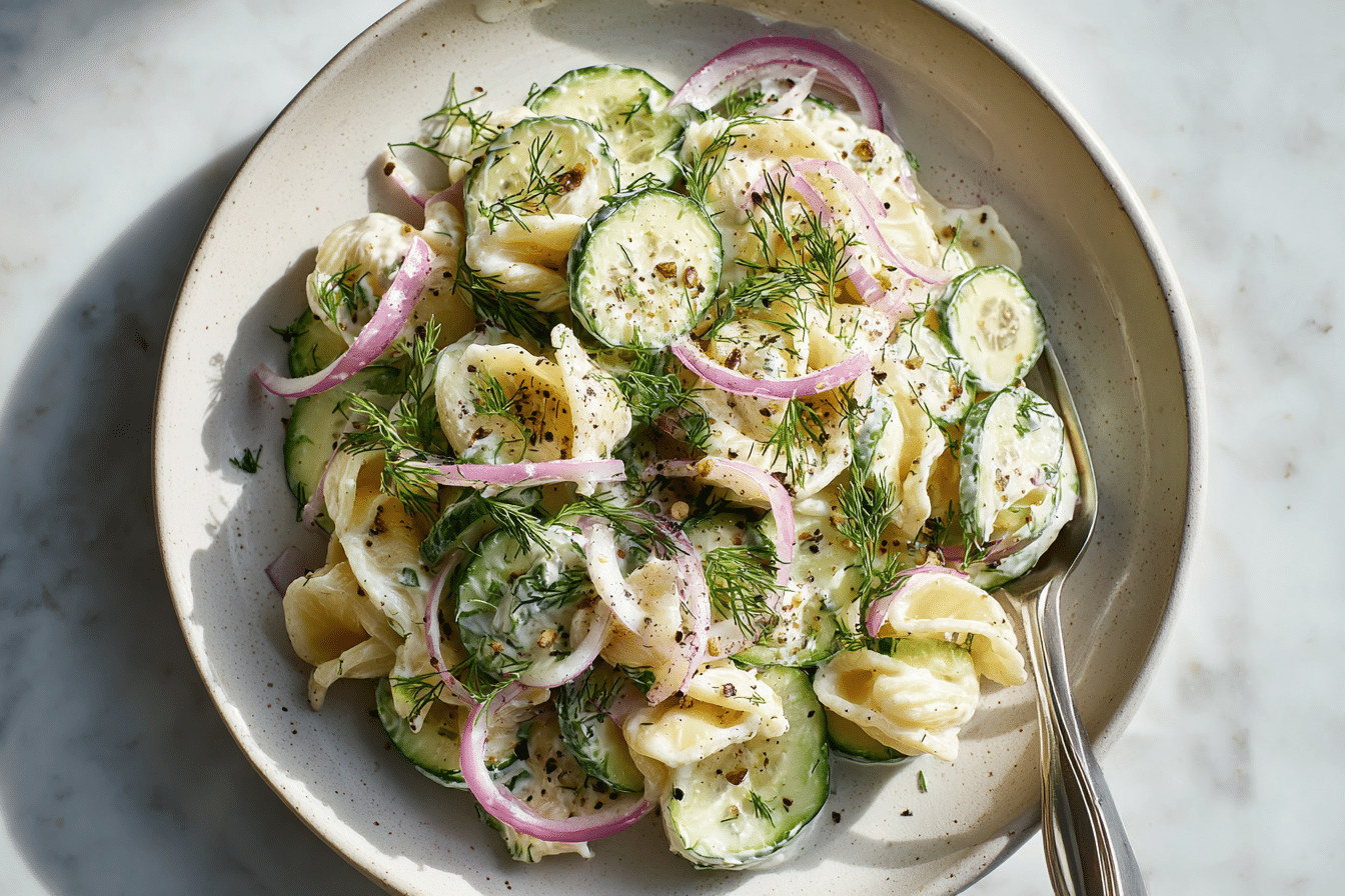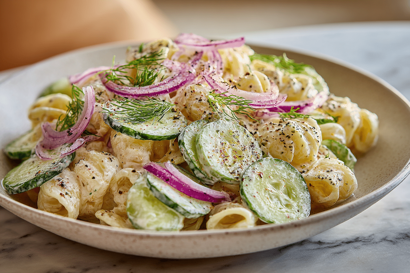 This Best Cucumber Pasta Salad is light, crunchy, and perfect for warm days. It combines tender pasta, crisp cucumbers, and a creamy tangy dressing for a refreshing side dish that’s great for BBQs, picnics, or easy lunches.