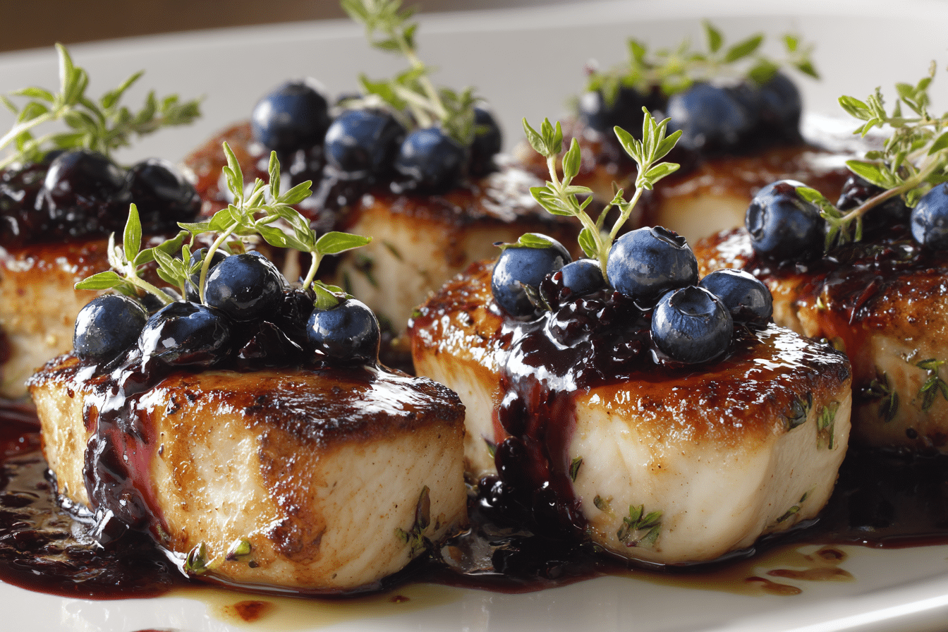 Blueberry thyme chicken might not be the first thing that comes to mind for dinner, but once you try it, it might just become a favorite. Juicy, pan-seared or oven-roasted chicken is glazed in a glossy blueberry sauce infused with fresh thyme — creating a sweet-savory combination that feels both rustic and gourmet.