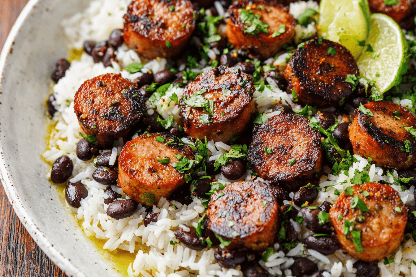 Comforting, savory, and deeply satisfying, Black Beans and Rice with Sausage is the kind of meal that feels like a warm hug in a bowl. Rooted in Latin American and Southern traditions, this easy one-pot dish pairs smoky sausage with tender black beans, fluffy rice, and bold seasoning to create a rich and robust flavor that’s hard to beat.