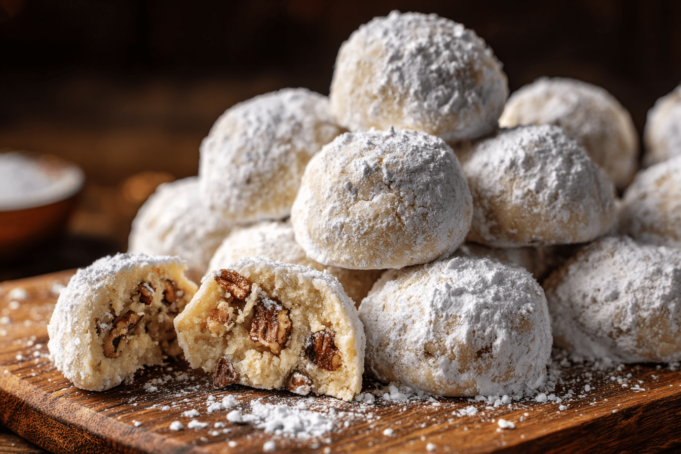 These Buttery Pecan Snowball Cookies are a holiday classic. Soft, crumbly, and rich with nutty pecans, they literally melt in your mouth. Coated in a generous dusting of powdered sugar, they resemble little snowballs — perfect for festive cookie trays, gift tins, or cozy winter snacking.