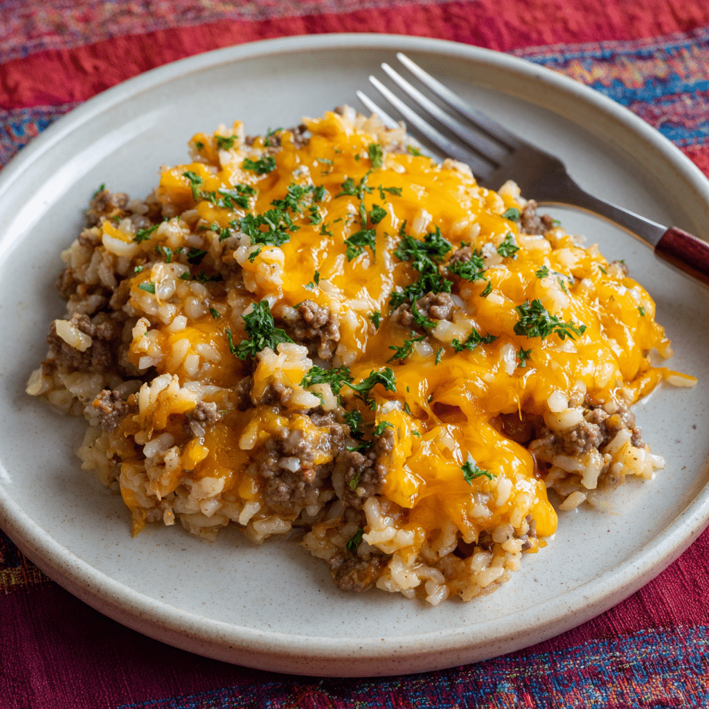 Cheesy Hamburger Rice Casserole – Hearty, Creamy & Family-Friendly