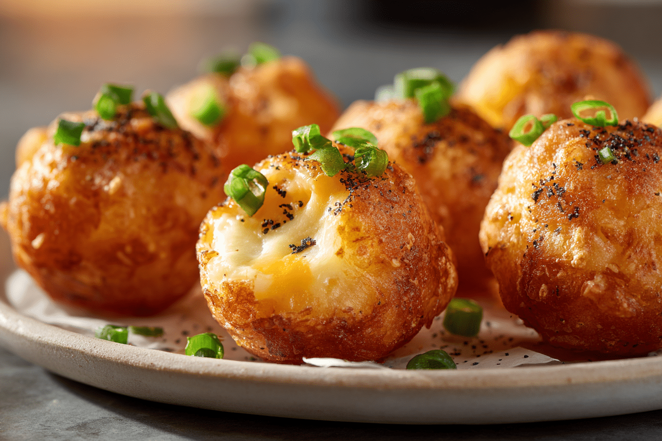 These bite-sized potato snacks are simple to make and use basic ingredients like mashed potatoes, cheese, and light seasoning. When fried or baked, they turn golden and crunchy while staying soft and creamy inside.