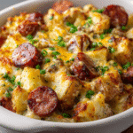 Cheesy Ranch Potatoes and Smoked Sausage is the ultimate hearty, stick-to-your-ribs kind of dinner. With golden roasted potatoes tossed in a creamy ranch seasoning, gooey melted cheese, and smoky sausage slices, this easy one-pan meal is everything you want on a busy weeknight — comforting, flavorful, and ready in under an hour.