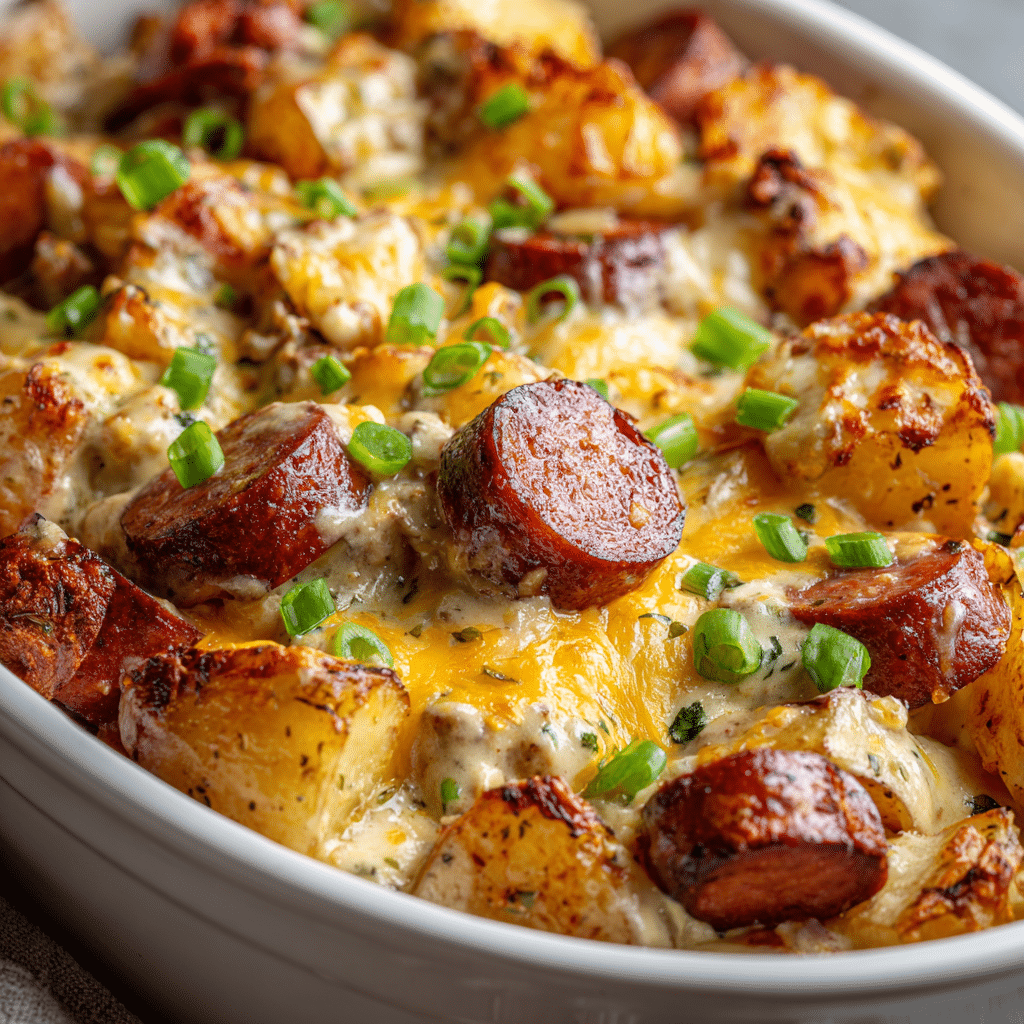 PrintA hearty, cheesy one-pan meal with crispy ranch-seasoned potatoes, smoky sausage, and melty cheddar. Family-friendly and perfect for busy nights.