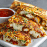 This Chicken Parm Quesadilla is a crave-worthy fusion of two comfort food classics: crispy chicken parmesan and golden, melty quesadillas. It’s everything you love about Italian-American chicken parm — tender chicken, marinara, gooey mozzarella, and Parmesan — tucked inside a crispy tortilla and pan-fried to perfection.