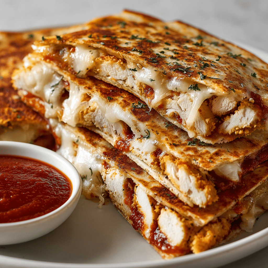 Make It Breaded: Toss the chicken in breadcrumbs and briefly bake or air fry before adding to the quesadilla for classic chicken parm texture.
