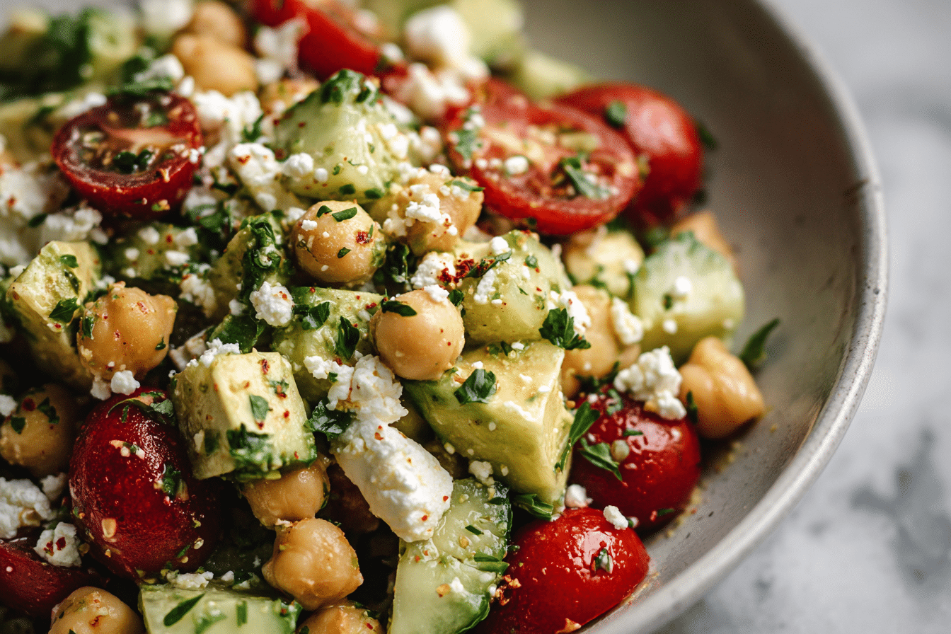 This salad stands out for its combination of textures and flavors. The softness of chickpeas and avocado pairs beautifully with the slight saltiness of feta and the crunch of fresh vegetables. A simple lemon and olive oil dressing ties everything together without overpowering the natural ingredients.