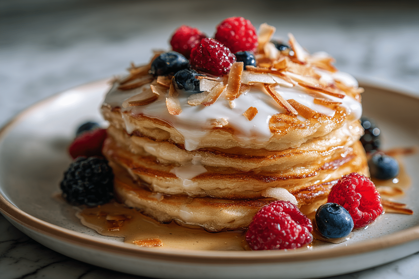 These Coconut Milk Pancakes are light, fluffy, and perfectly low-carb, making them a delicious healthy breakfast that fits keto and gluten-free lifestyles 🥥🥞✨