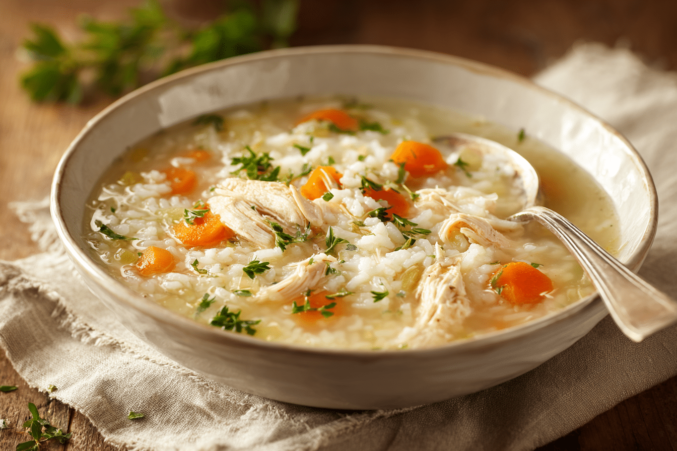 Chicken provides satisfying protein, while rice offers a gentle energy source. The vegetables add fiber, vitamins, and natural sweetness. The broth keeps things light yet flavorful, especially when made with a low-sodium variety.