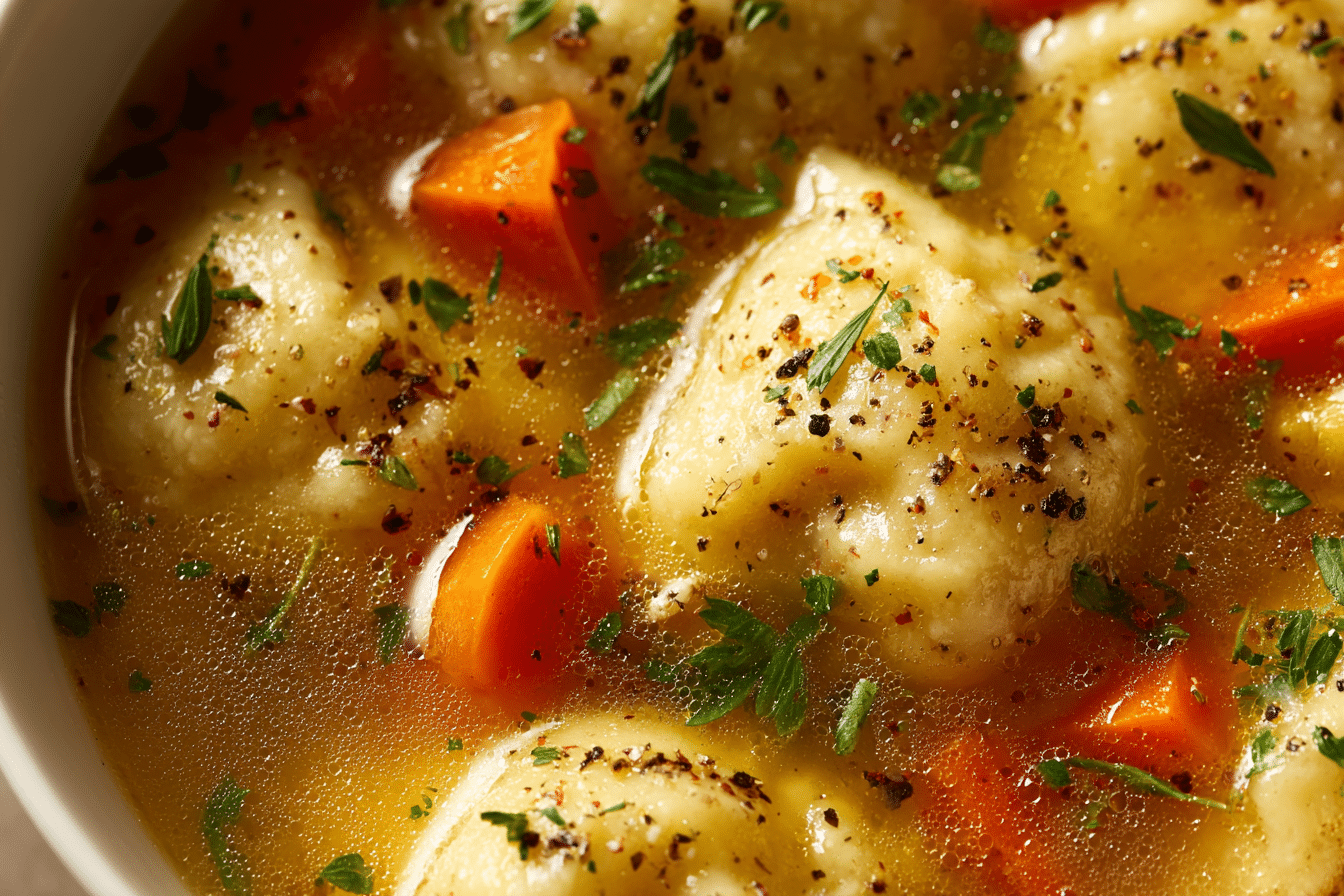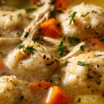 It’s the kind of recipe that feels familiar the moment you taste it. There’s a nostalgic warmth in every spoonful, whether you’re curling up on a chilly evening or feeding your family on a slow Sunday. The dumplings are soft but sturdy, soaking up the savory broth while still keeping their structure. And the base? A golden, aromatic broth filled with chunks of chicken and humble vegetables—nothing fancy, just good food made well.