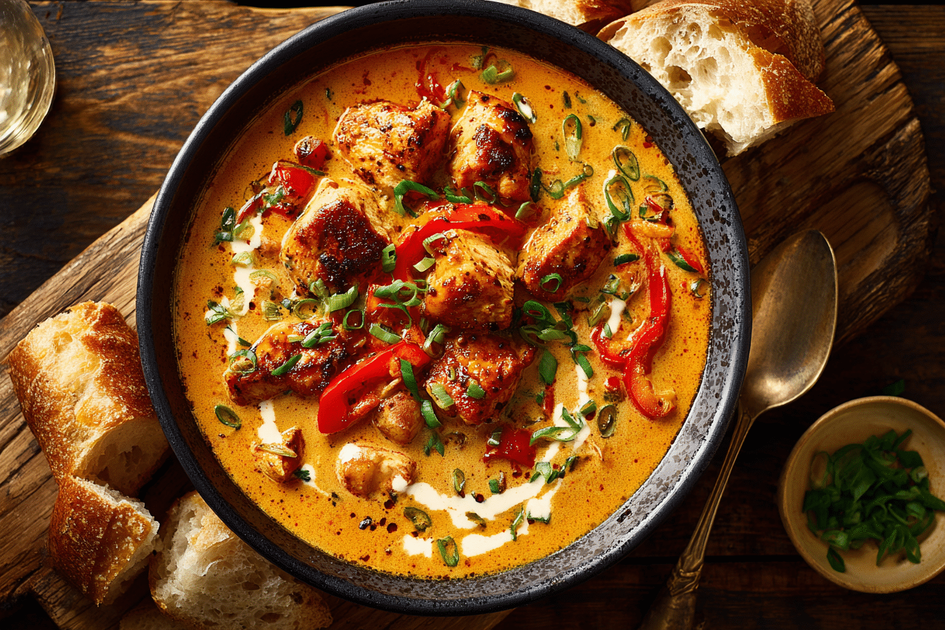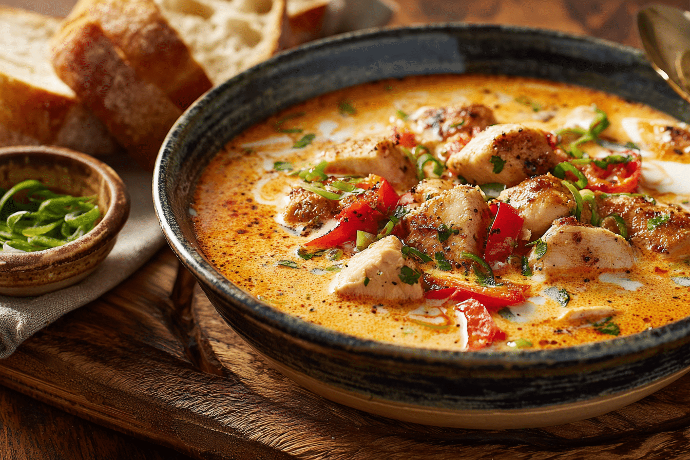 A bold and creamy soup filled with tender chicken, bell peppers, and Cajun spices — hearty, comforting, and ready in under an hour.