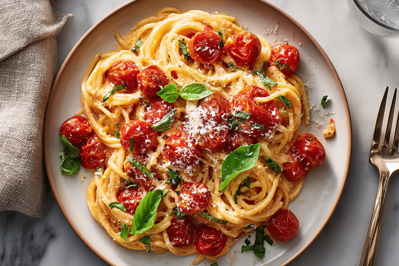 A creamy cherry tomato pasta is a quick, comforting dish that brings together sweet roasted-style tomatoes, garlic, and a silky cream sauce that clings to every strand of pasta. It is designed for busy days when something warm, flavorful, and satisfying is needed in under 20 minutes.