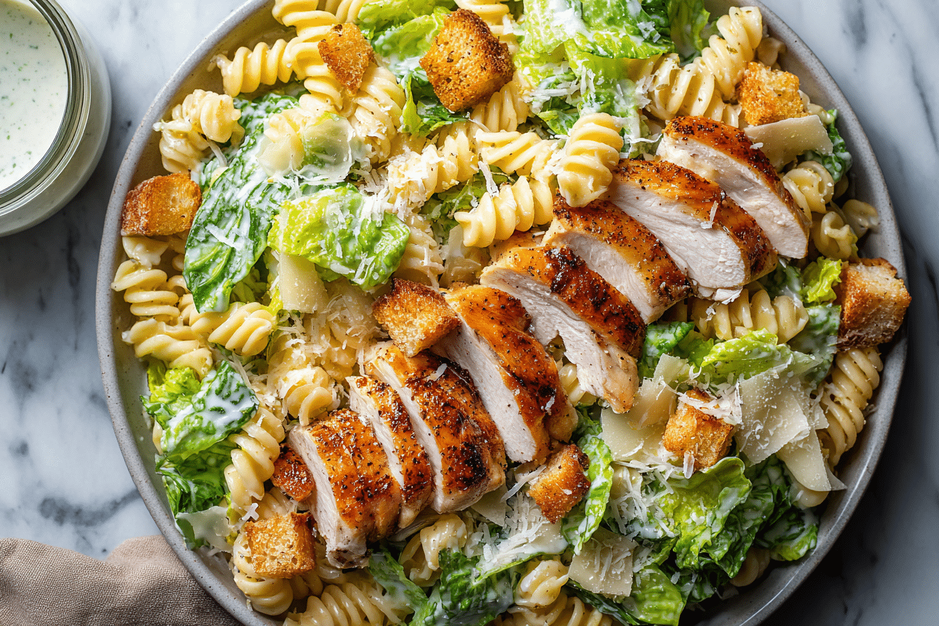 This Chicken Caesar Pasta Salad is a rich, crowd-pleasing twist on the classic Caesar. It combines tender pasta, juicy chicken, crisp romaine, parmesan, and creamy Caesar dressing for a hearty, flavorful dish thatβs perfect for gatherings, potlucks, or meal prep.