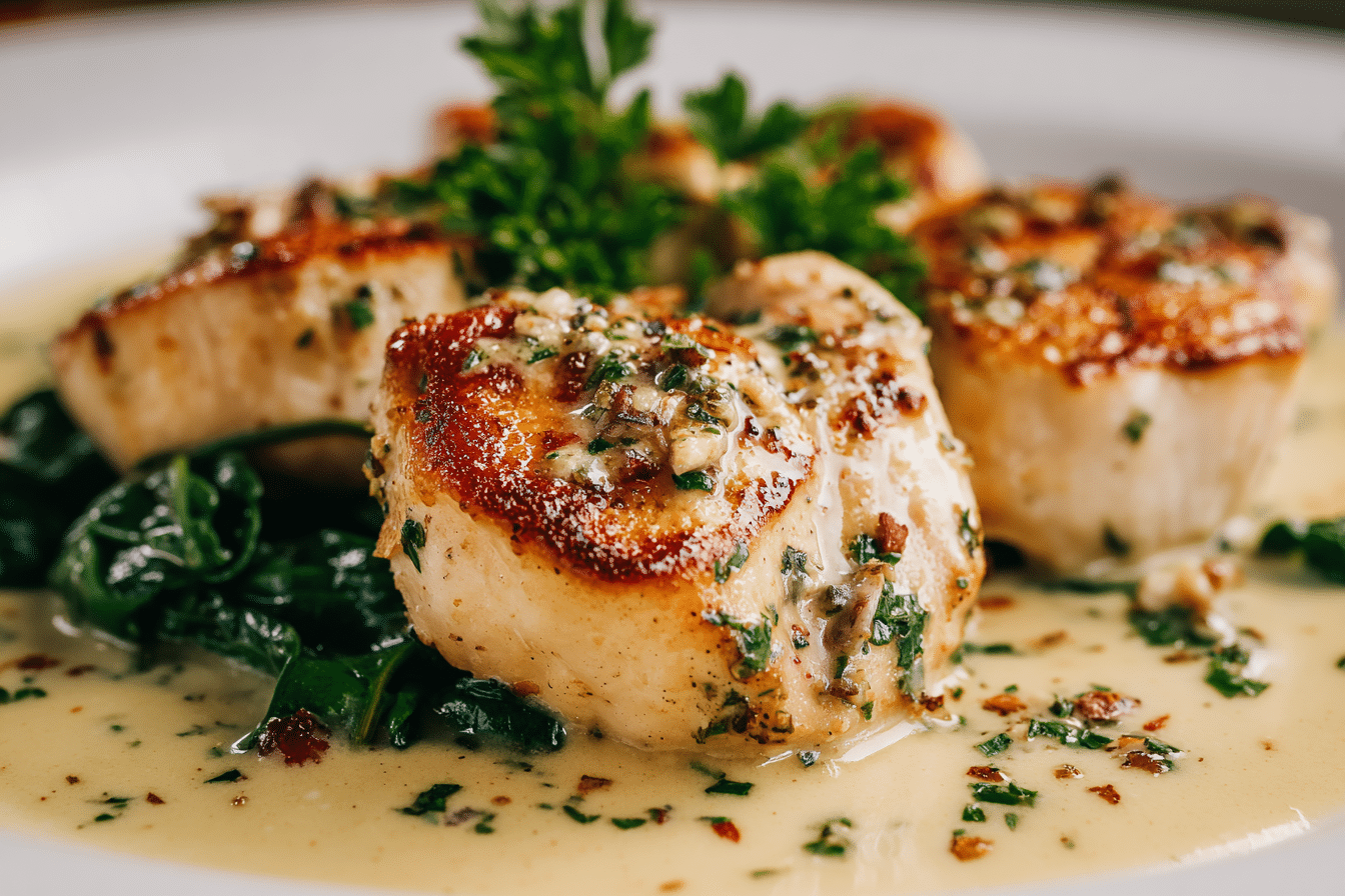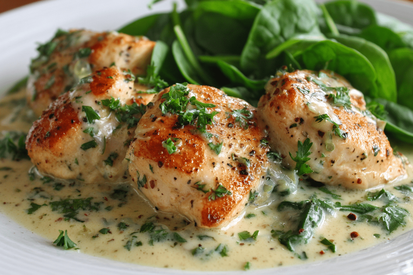Golden chicken breasts, pan-seared to a crisp finish, are slowly simmered in a creamy garlic sauce that’s both rich and comforting. The aroma alone is enough to make mouths water — and the best part? It all comes together in one pan, making cleanup just as easy as the cooking.