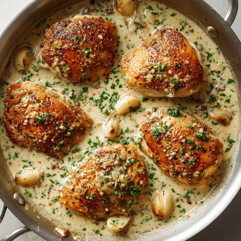 The dish is inspired by rustic French and Italian farmhouse cooking, where garlic, cream, and butter often form the heart of flavorful sauces. You don’t need wine or flour—just good-quality chicken, a handful of pantry staples, and patience to let the garlic caramelize and mellow into something magical.