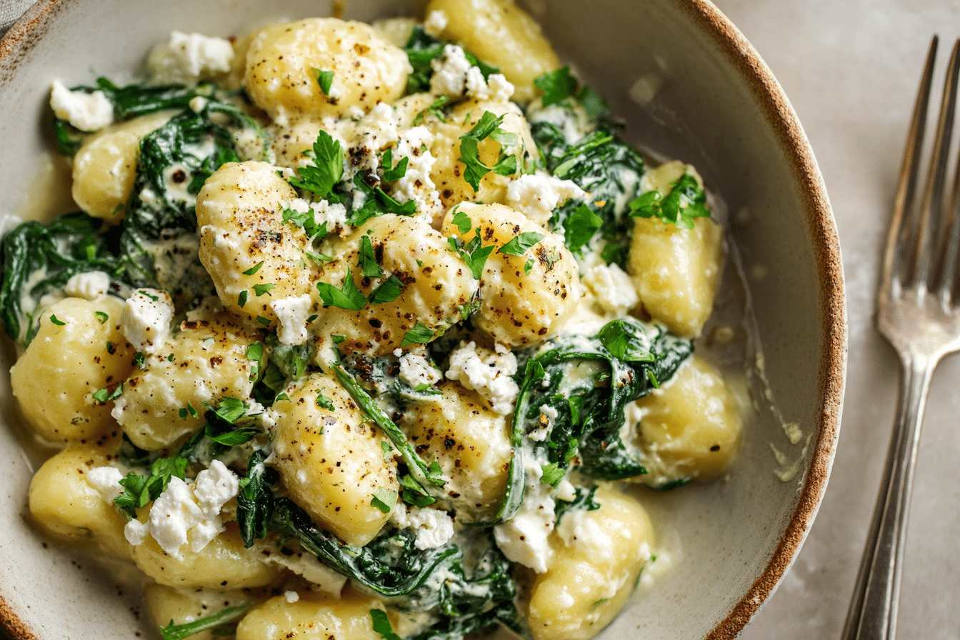 Creamy Gnocchi with Spinach and Feta Recipe | Healthy Dinner Inspiration