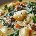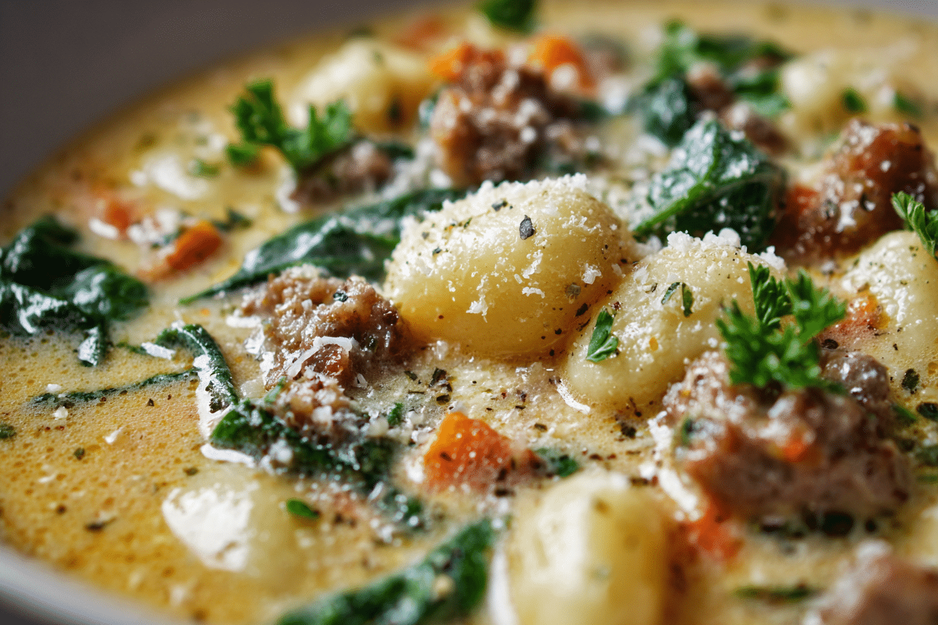 A creamy, cozy soup made with Italian sausage, gnocchi, spinach, and Parmesan — ready in 30 minutes and packed with bold flavor in every spoonful.