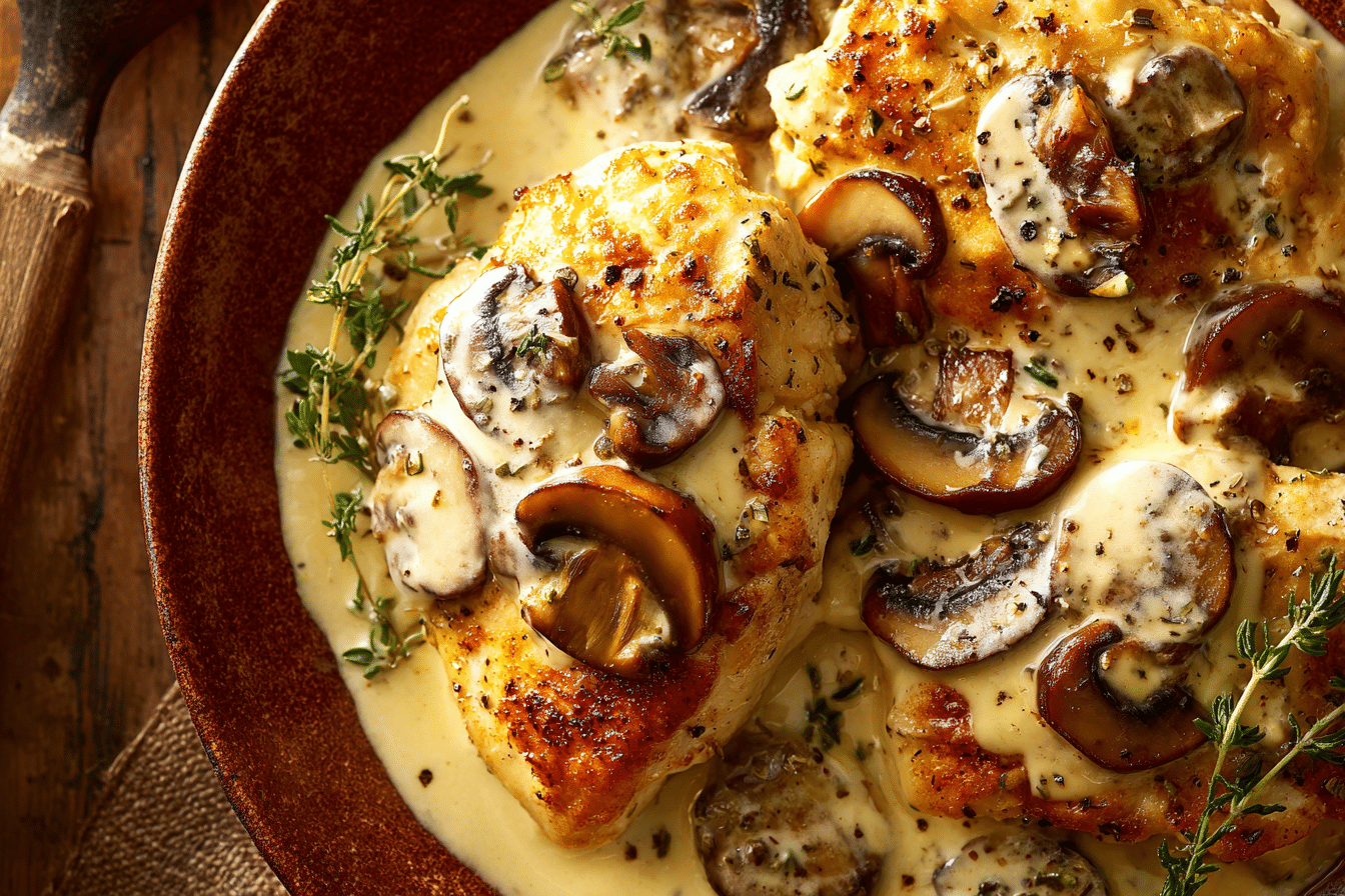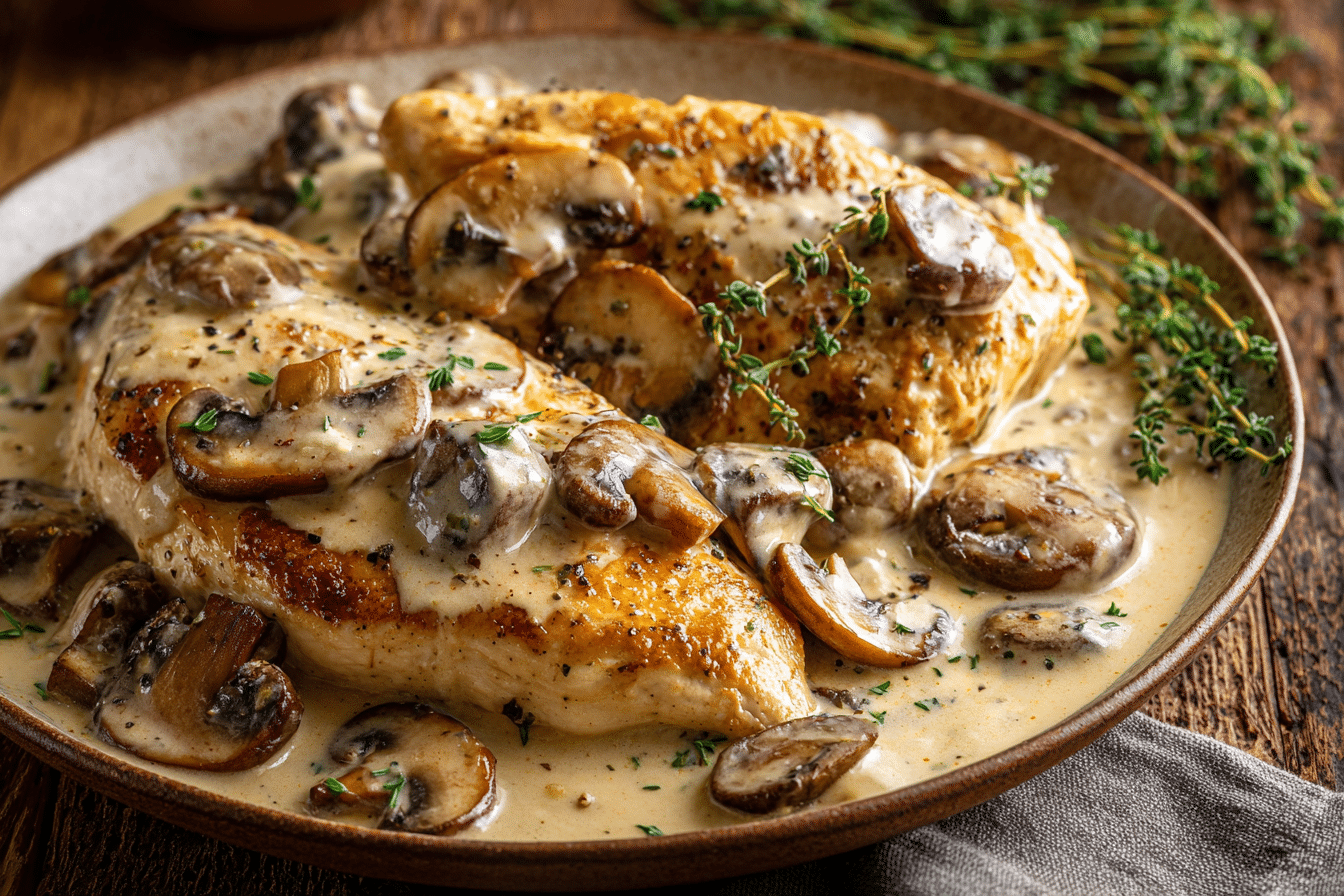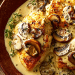 If you’re looking for a comforting, restaurant-worthy dinner that comes together quickly, this Creamy Mushroom Chicken delivers every time. Juicy, pan-seared chicken breasts are smothered in a velvety mushroom sauce made with garlic, cream, and a splash of broth. It’s a savory, earthy dish that feels indulgent yet simple enough for a weeknight.