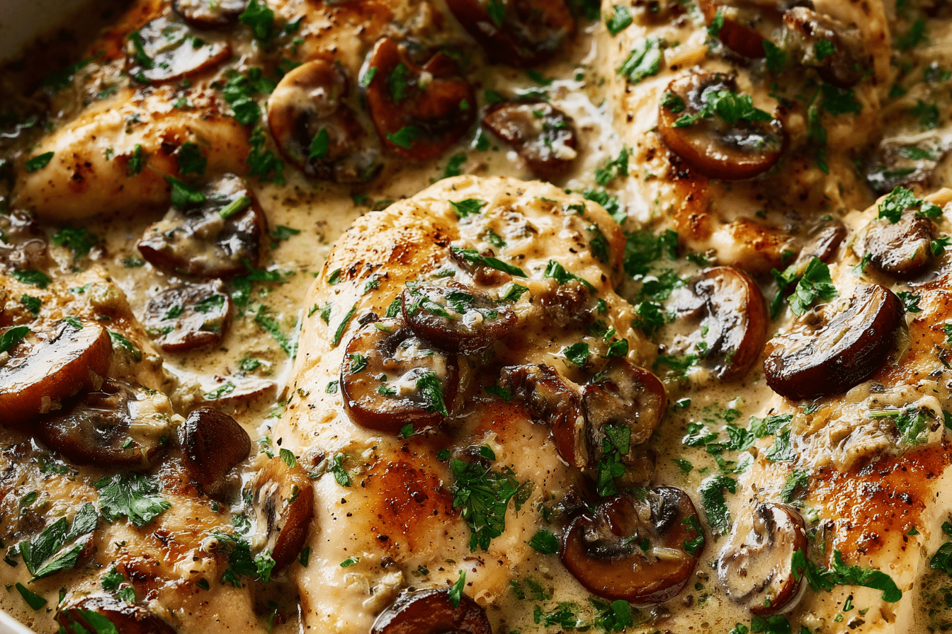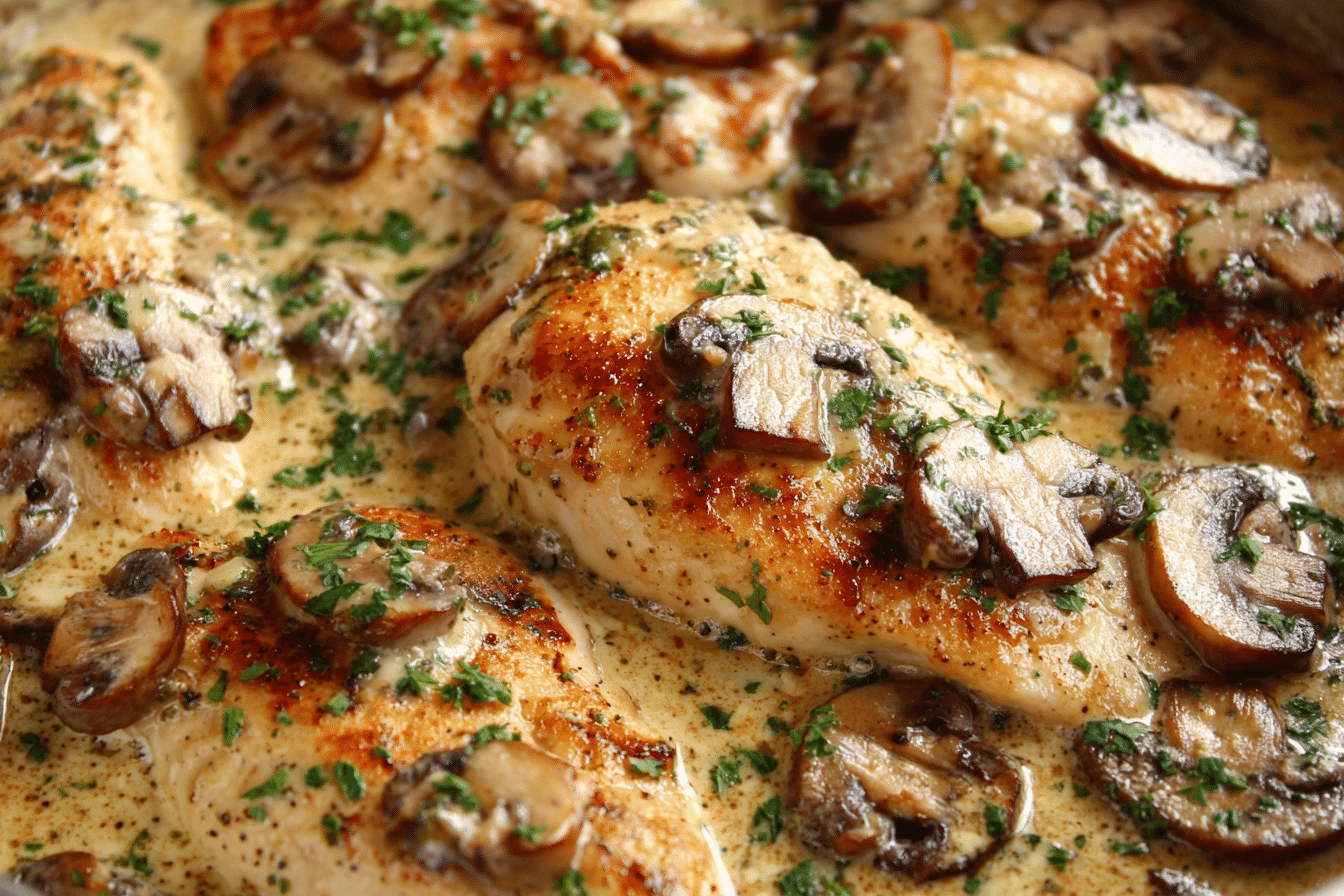 This one-skillet chicken dish features golden-seared chicken breasts, savory mushrooms, and a creamy Marsala wine sauce. Simple to make, rich in flavor, and perfect for a comforting dinner.
