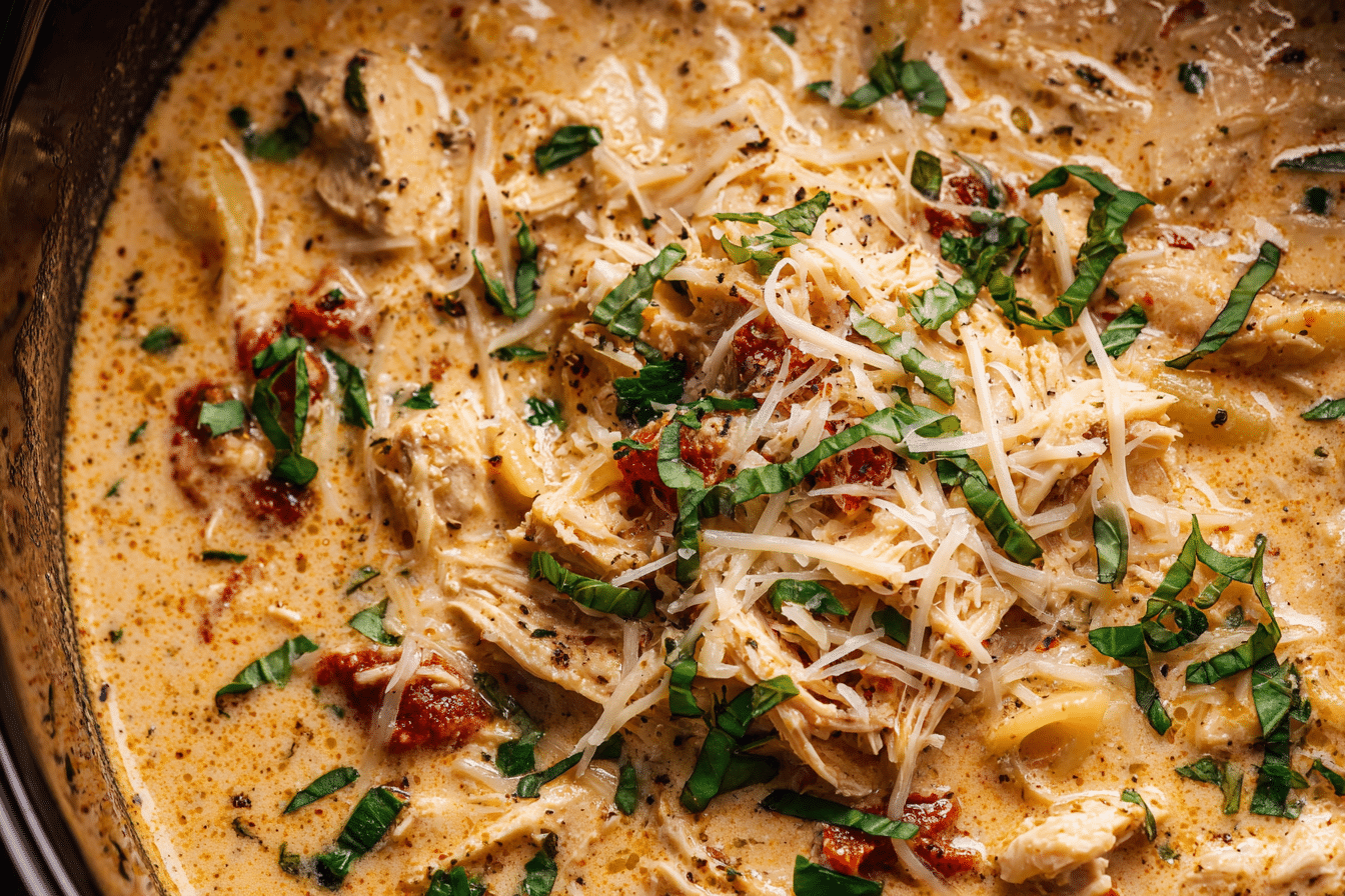 Crock Pot Creamy Chicken Parmesan Soup takes the familiar flavors of classic chicken parmesan and transforms them into a rich, spoonable meal made for the slow cooker. Instead of breaded cutlets, this version focuses on tender chicken, tomato-infused broth, and a creamy finish that simmers gently over time. The result is a hearty soup that feels comforting and familiar without requiring hands-on cooking.