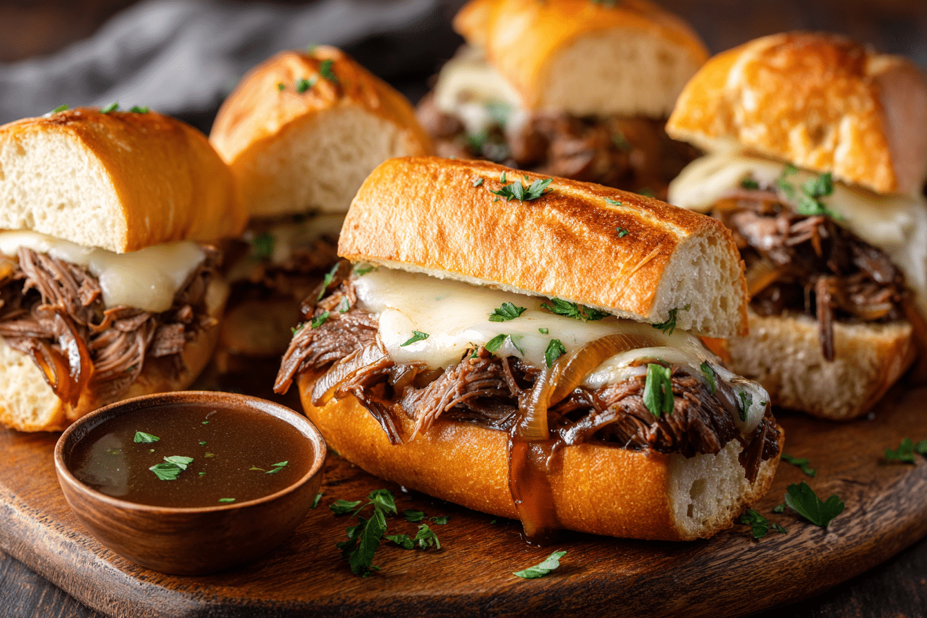 • Cheesy French Dip: Top sandwiches with provolone or Swiss for gooey indulgence.