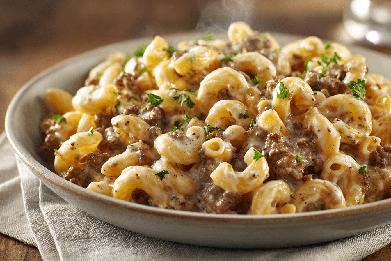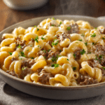 It’s a creamy, cheesy, beefy pasta dish that cooks in just one pot — making cleanup almost effortless. With tender elbow macaroni, seasoned ground beef, and a rich cheese sauce, it’s a family-friendly dinner you can make in under 30 minutes.