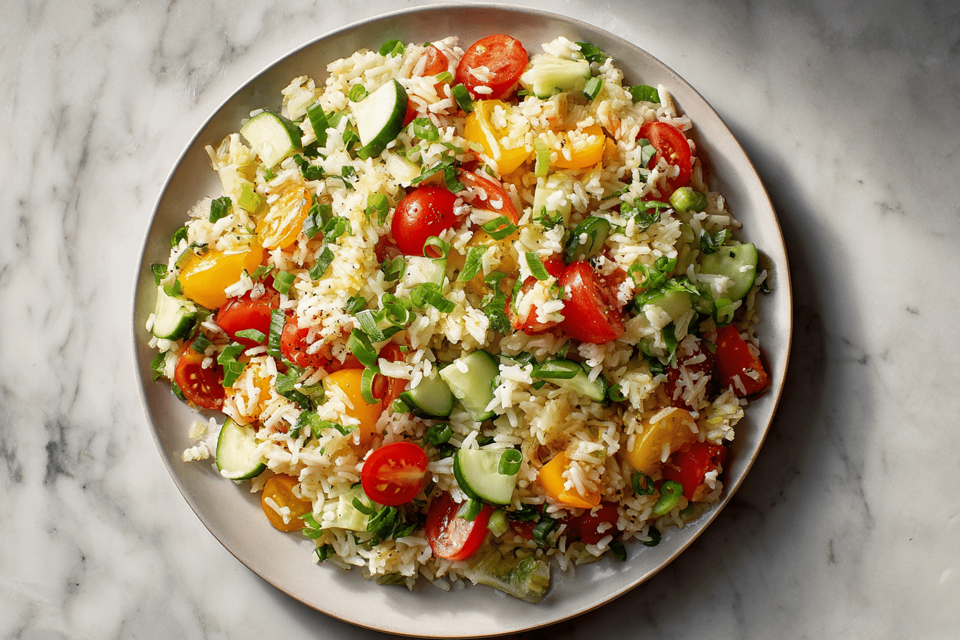 Easy Rice Salad is a fresh and colorful mix of rice, vegetables, and a light lemon dressing perfect for quick meals or meal prep.