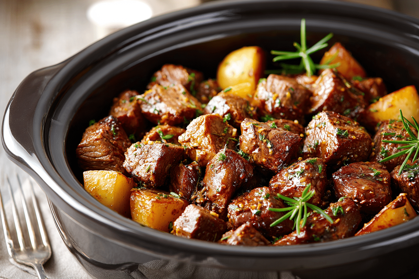How to Make Slow Cooker Garlic Butter Steak Bites & Potatoes