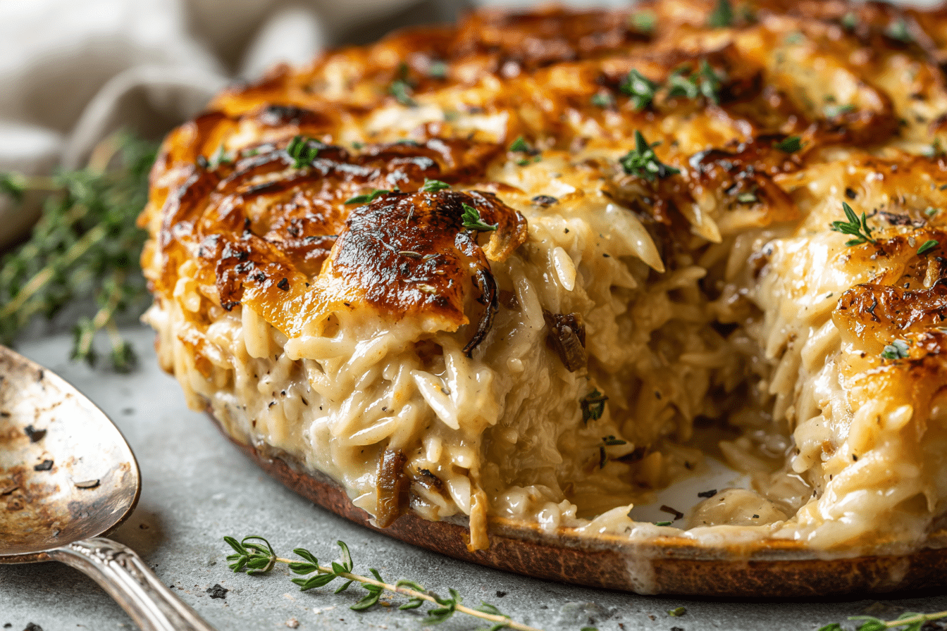 French Onion Chicken Orzo Casserole is a creamy, cheesy, and comforting dish that combines tender chicken, caramelized onions, and orzo pasta in a rich French onion-inspired sauce. This casserole delivers all the flavors of classic French onion soup—savory, sweet, and deeply satisfying—transformed into a hearty, oven-baked meal perfect for weeknight dinners or family gatherings.