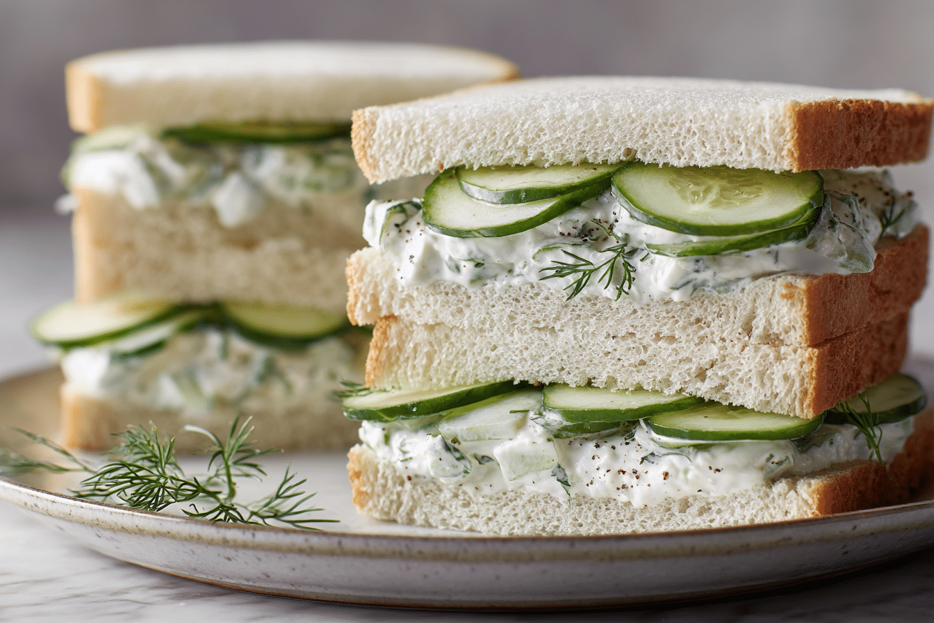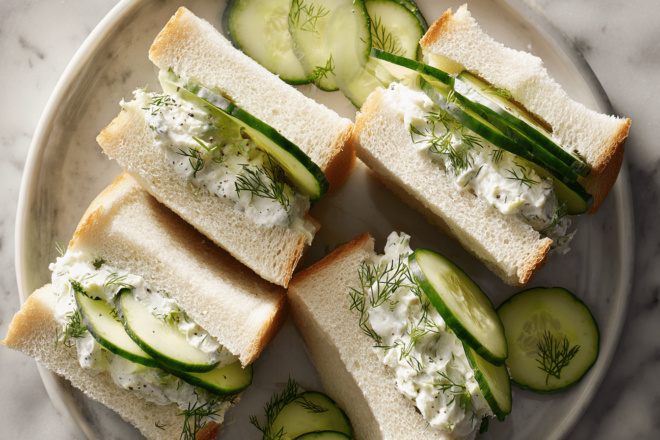 These sandwiches are known for their delicate texture and fresh flavor. The cucumbers add crunch and hydration, while the creamy spread brings everything together in a smooth, satisfying bite.