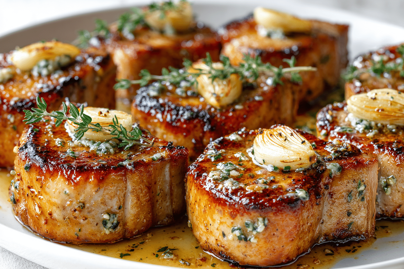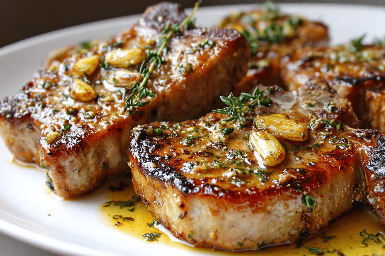 Vegan Alternative: Replace pork with thick slices of seared tofu or portobello mushrooms using the same garlic butter method (with plant-based substitutes).