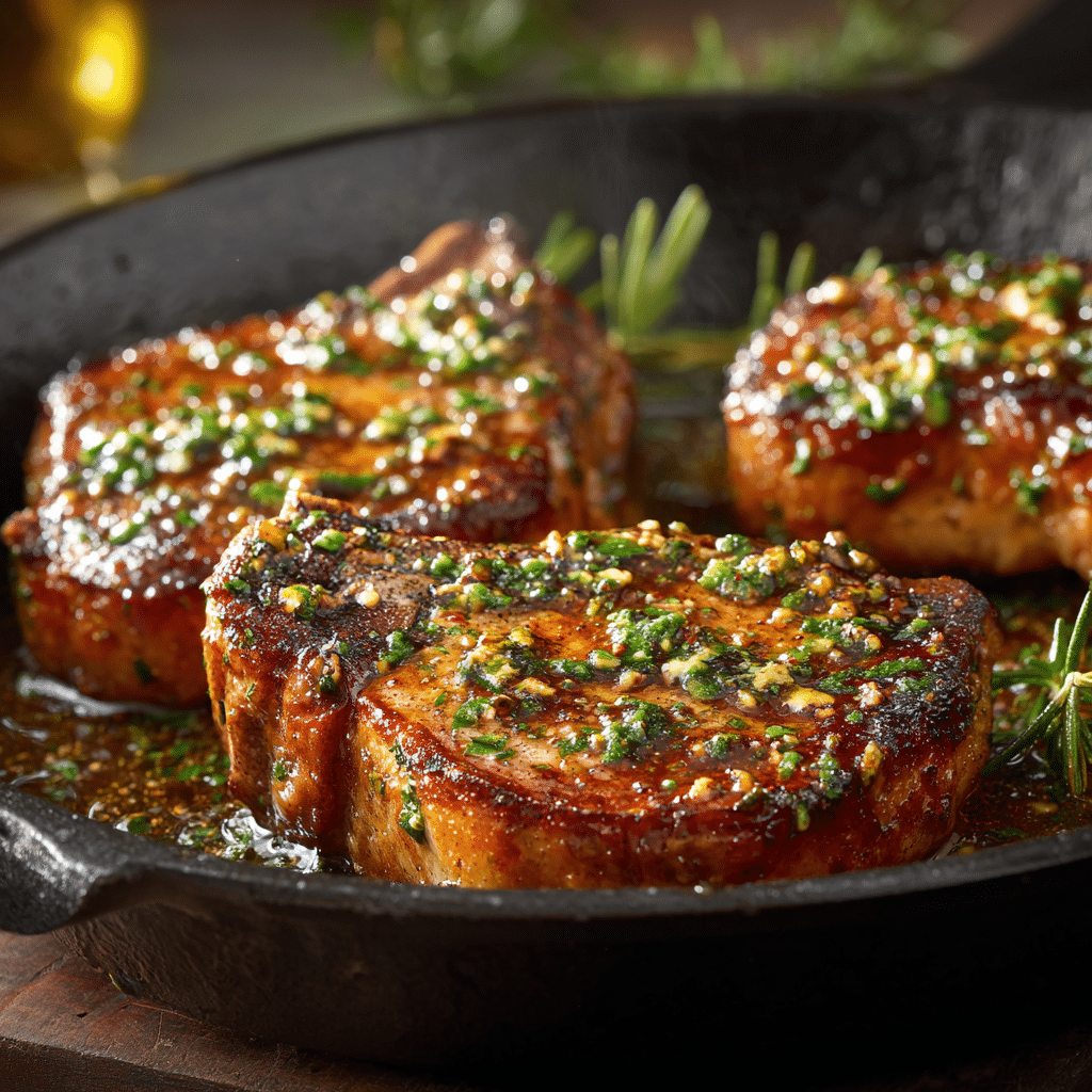 Juicy bone-in pork chops pan-seared to golden perfection, then basted with garlic butter and fresh herbs. A quick and flavorful dinner that feels gourmet without the effort.