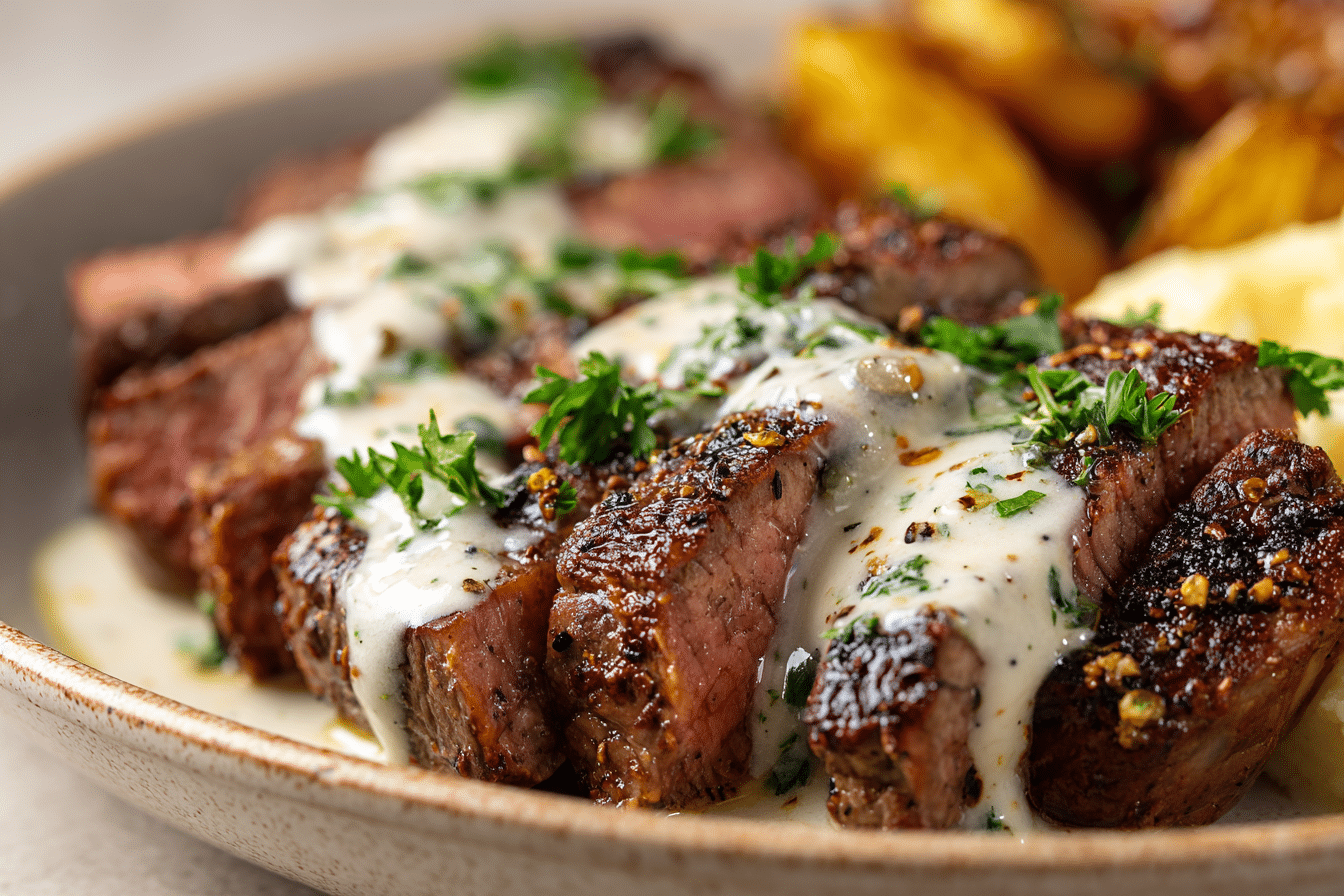 Garlic Butter Steak with Parmesan Cream Sauce is the ultimate indulgent meal that’s surprisingly easy to make at home. Tender, juicy steak is seared to perfection, then smothered in a rich, creamy sauce made with garlic, Parmesan, and a hint of butter. This dish is perfect for a cozy weeknight dinner, a special occasion, or whenever you crave restaurant-quality steak at home.
