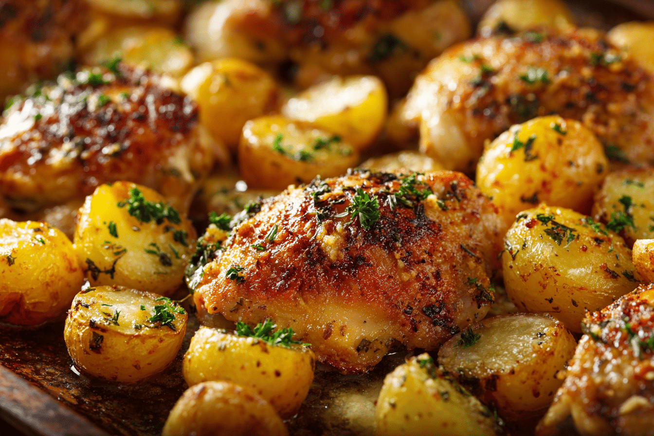 Fresh Garlic: Minced or finely grated garlic infuses the chicken and potatoes with deep, savory flavor. Use fresh garlic for the best aroma — not pre-minced from a jar.