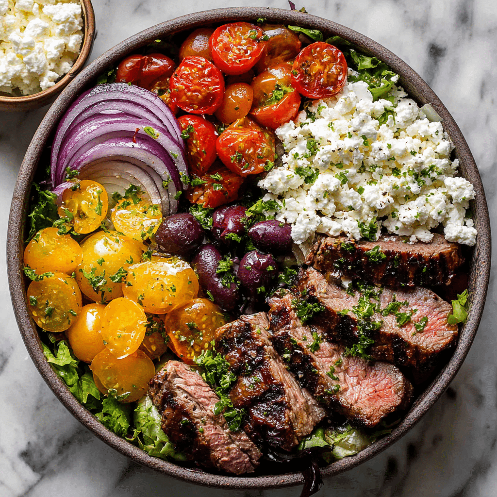 Healthy Mediterranean Steak Bowl Recipe: Fresh, Flavorful & Protein-Packed
