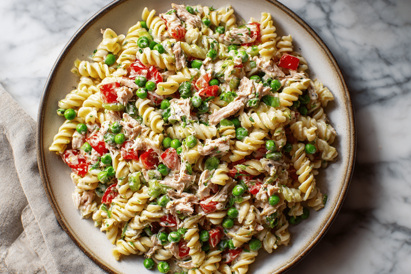 This Healthy Tuna Pasta Salad with Peas is a simple, protein-packed meal that’s perfect for hot days, meal prep, or a quick lunch. It’s made with tuna, tender pasta, sweet peas, and a light creamy dressing for a balanced dish that’s filling but still fresh.