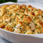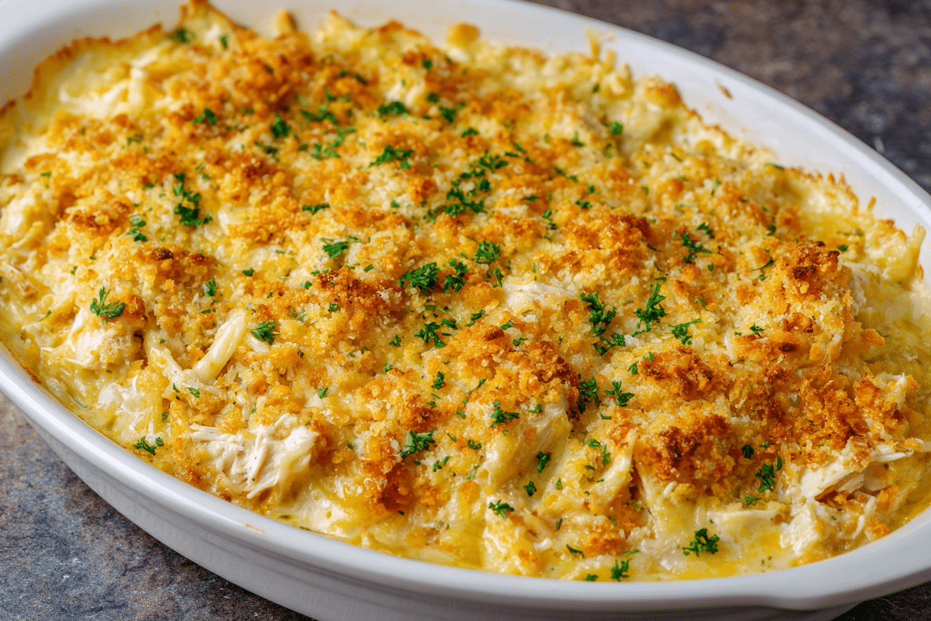 There’s a reason this dish has stood the test of time in countless kitchens. The Ritz crackers add a salty, buttery crunch that contrasts beautifully with the smooth, creamy filling. The result is a warm, savory chicken bake that feels both nostalgic and utterly irresistible.