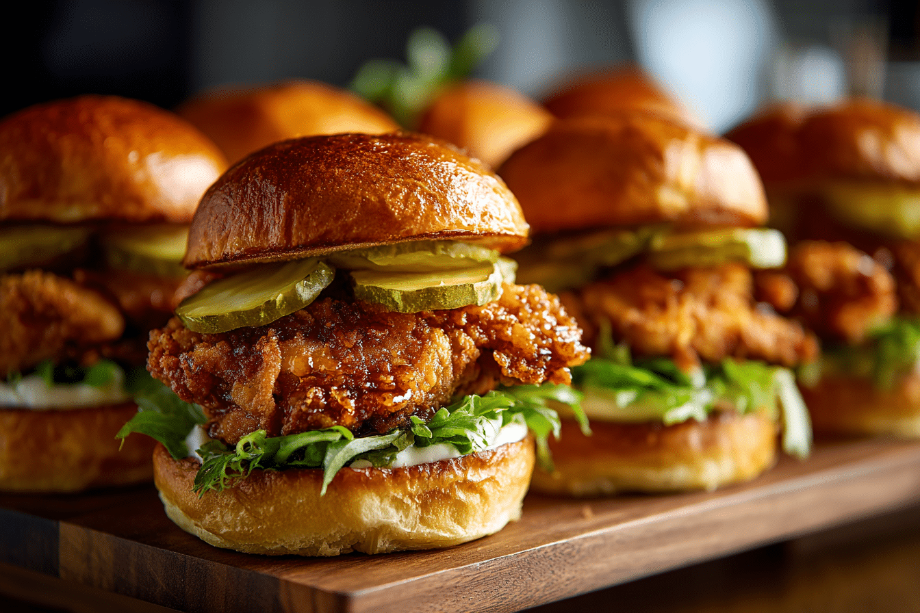 Keep the oil hot and consistent while frying, and use a wire rack—not paper towels—to preserve the crunch. Letting the chicken rest before assembling keeps it juicy and prevents the bun from getting soggy.