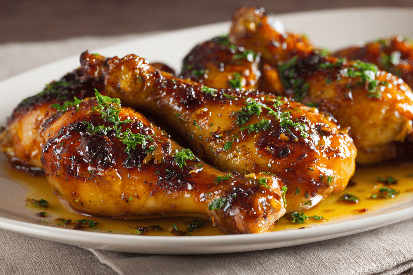From the moment they hit the oven, the scent of garlic gently sizzling in butter with sweet notes of honey fills your kitchen with anticipation. The sauce bubbles into a golden, sticky coating that clings to each drumstick, locking in flavor and creating a slightly crisp caramelized crust.