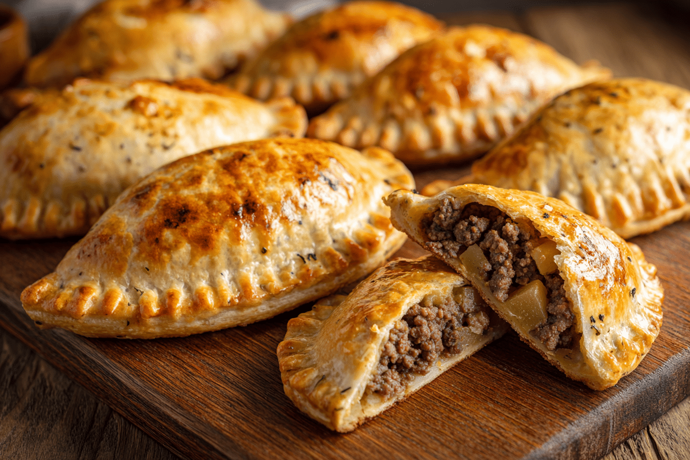 This traditional version features tender beef, diced potatoes, onions, and herbs wrapped in buttery pastry.